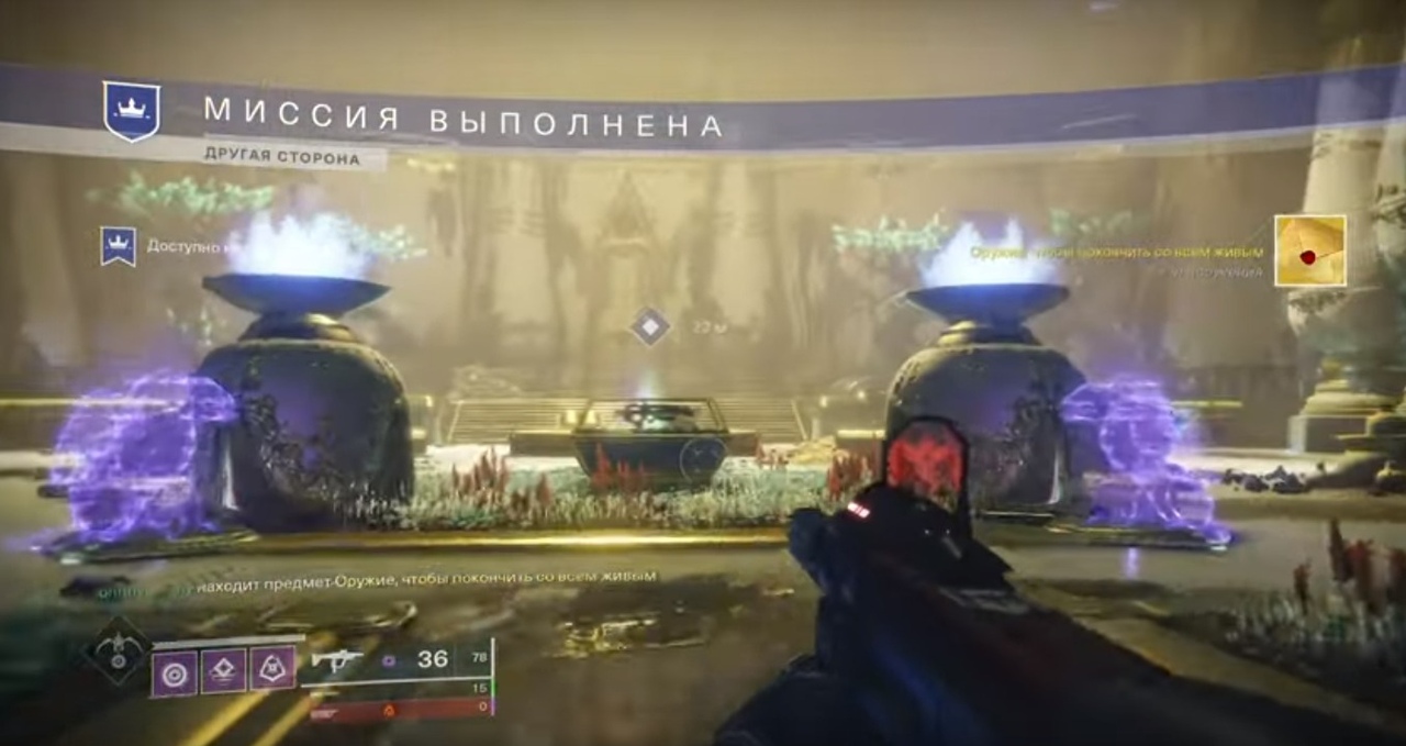 После прохождения миссии будет открыт ещё один портал. Он будет вести в обычный мир. Центр Зала трофеев – место, куда необходимо прийти. Здесь будет сундук с заветным оружием. Винтовка «Злые силы» в Destiny 2 будет получена!